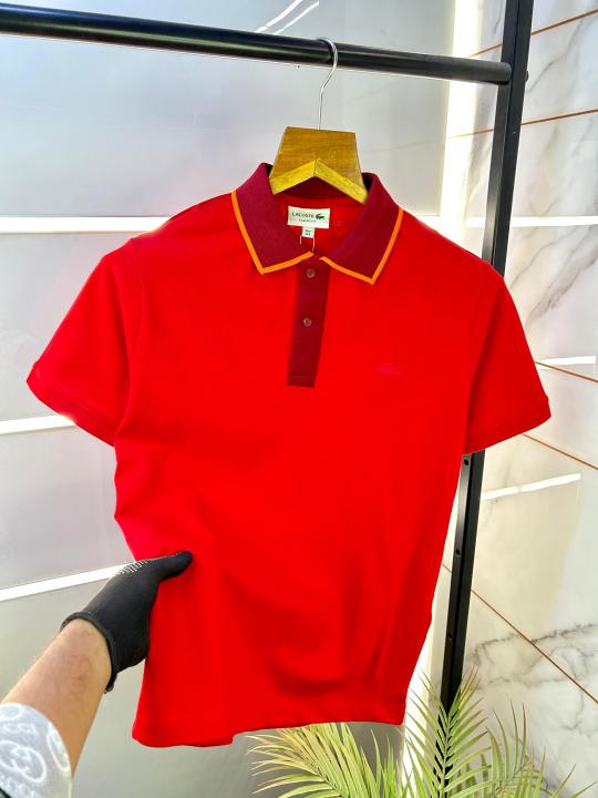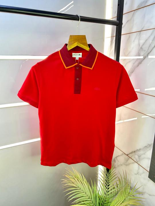 Sale Lacost e Red Collar Neck Premium Polo T-shirt F2376-RE